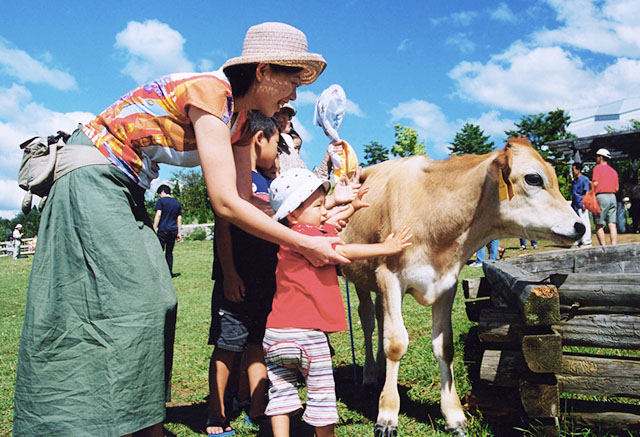 以前から牧舎で時々見かけるのが、赤ちゃんを抱っこした親が赤ちゃんの手をつかんで動物に触れさせたりする光景です。