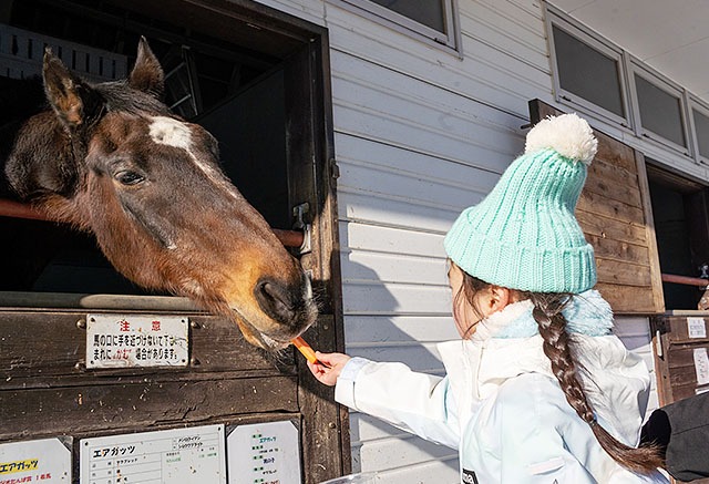 牧歌の里のお馬さんたちは、かしこくて優しい子ばかりです。 大好物のニンジンをあげたり、乗馬をしたり、いっしょに楽しい時間を過ごしましょう♫