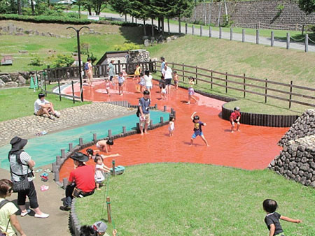また暑い日はじゃぶジャブ池でちびっ子たちが大はしゃぎ。着替えがあると安心です。