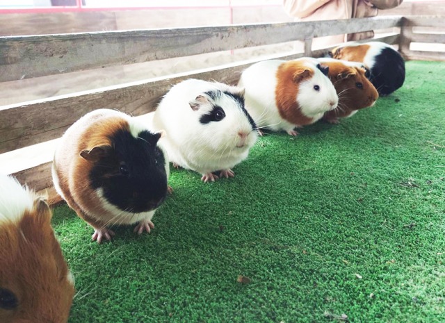 短い後ろ足で立って催促してきたり、横一列に並んでいたり。
