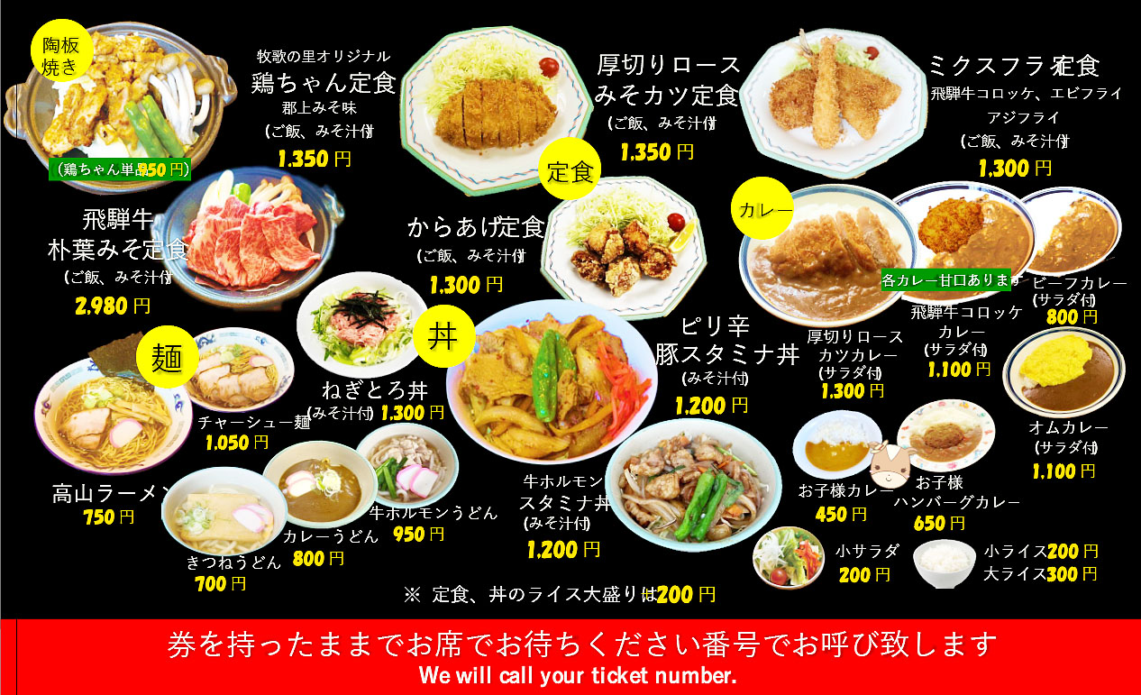 雪遊びの後は牧歌の里園外にある「温泉 牧華」内のレストラン「のばら」がおすすめです。 入浴を利用しなくてもお食事だけでもご利用いただけます。