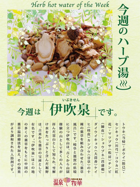 牧歌の里温泉『牧華』 今週のハーブ湯『伊吹泉』