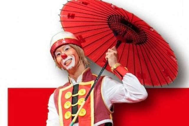 和傘を使った大道芸でみんなを楽しませてくれる元気なクラウンさん。