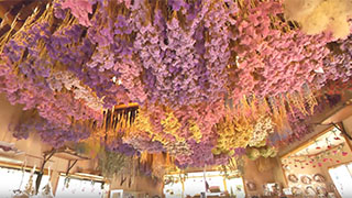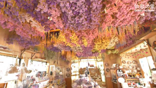 アロマグッズなどの販売や、ポプリ詰め体験ができるお店です。天井のドライフラワーは必見です。