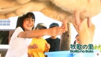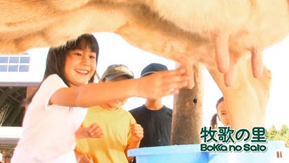 牧歌の里の人気者・ジャージー牛「あんこちゃん」の乳搾り。(通年)