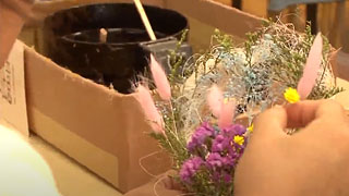 ドライフラワーやリボン、かわいい動物のオーナメントなどをお好きにアレンジして作ります。(通年)