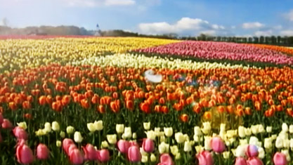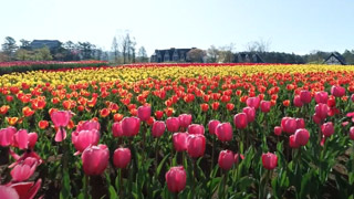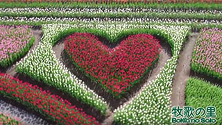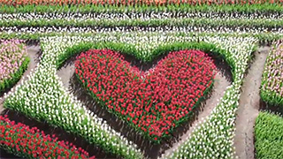 牧歌の里の鮮やかなチューリップ畑をドローンで空から空撮。鳥になった気持ちでご覧ください。