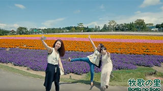 2人の女性による入浴シーンや動物触れ合いシーンで秋をPR。