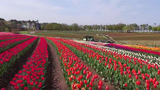新たに撮影したドローン映像で迫力のチューリップ畑をご覧いただけます。