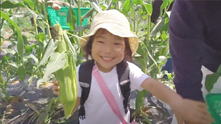 ふれあい農園でのとうもろこし収穫に子どもも大はしゃぎ!(8月頃)