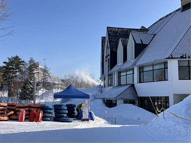 ・ソリとスノーチューブのレンタル場所はメインハウス前の受付で現金でのお支払いをお願い致します。