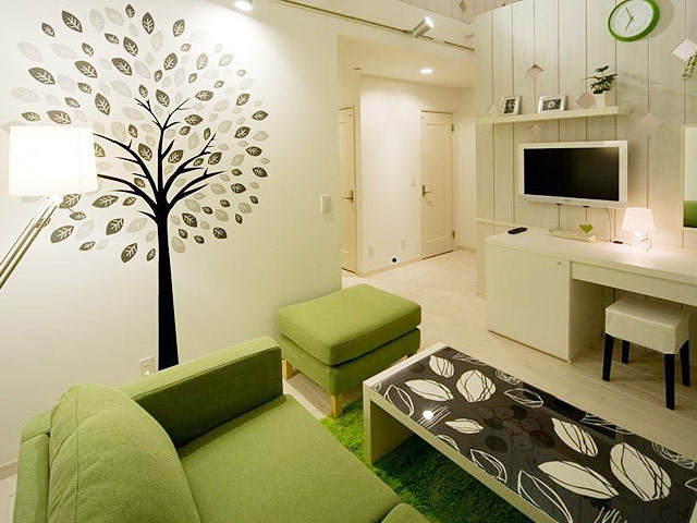 ロフトのついたファミリーやグループ向けのお部屋です。 1階にリビングとツインベッドルーム。ロフトにはお布団を敷いて最大6名までお泊まりいただけます。 グリーンを基調とした爽やかなインテリアと開放的な吹抜けは、 ご家族の記憶に残るワンシーンとして演出いたします。 その他、用途やスタイルに応じて様々なタイプのゲストルームございます。